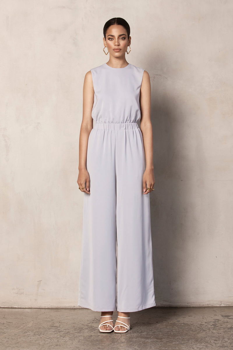 With a sleeveless design that’s ideal for layering with a long cardigan, this jumpsuit boasts an elastic-banded waist and wide legs for both style and comfort.