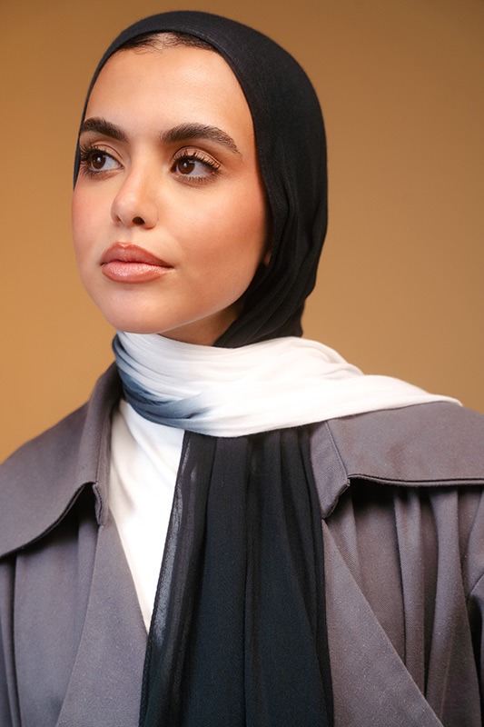 Super soft , light and breathable Modal, a gorgeous material for scarves. Featured here in an Ombré of must have gradient hues of black & off-white.