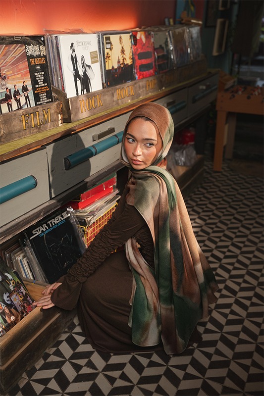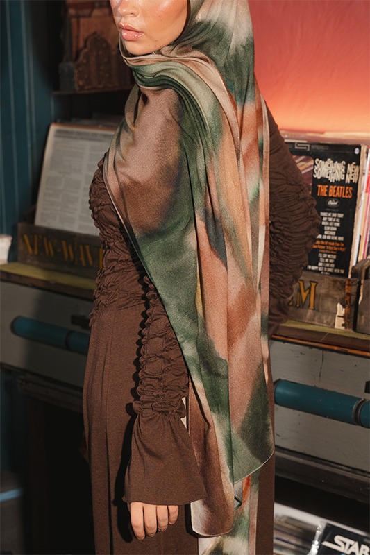 Ivy Oak is a wearable piece of nostalgia. Its rich blend of earthy olive, warm brown, and soft beige undertones swirls like faded film grain, creating a painterly effect in every fold.