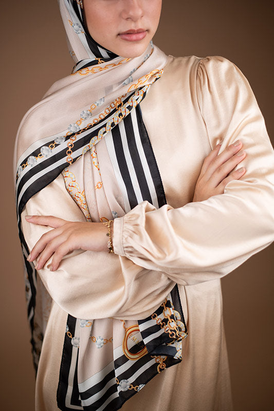 Dress up in a classy look merged with captivating modernity and elegance in this satin beauty.