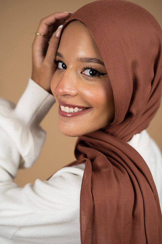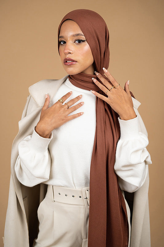 Decadent chocolate‑toned modal that feels rich and smooth — effortless elegance for coffee‑hued wardrobes.