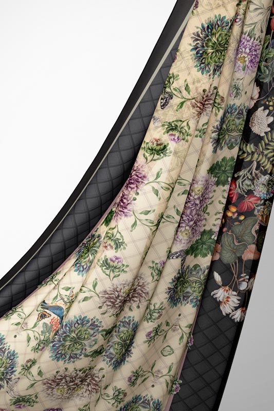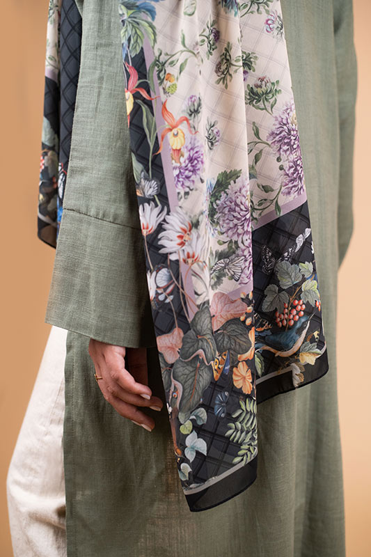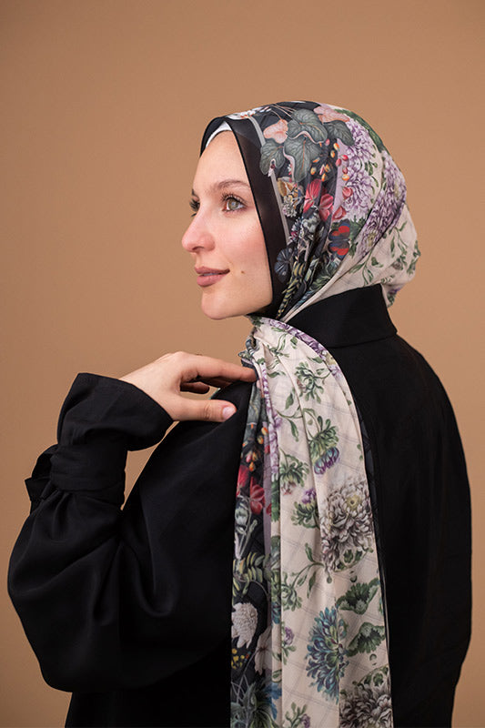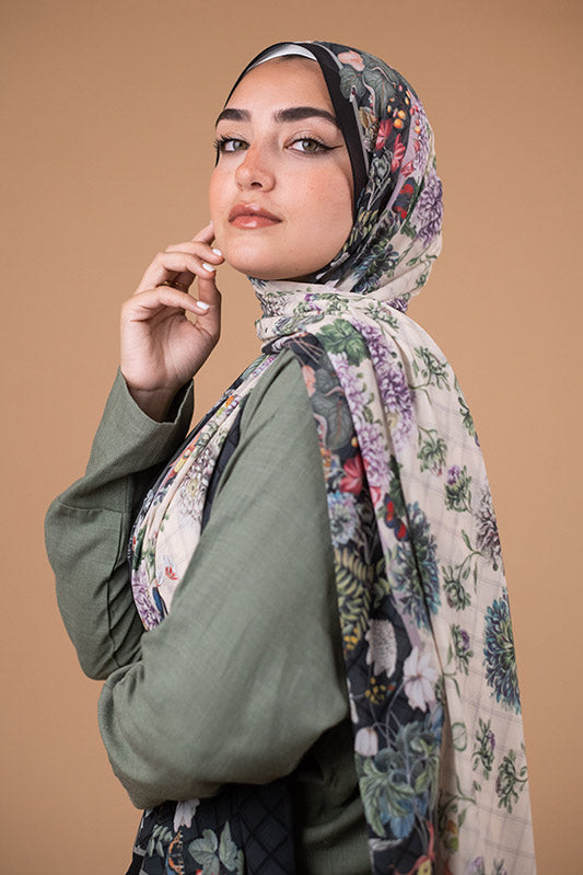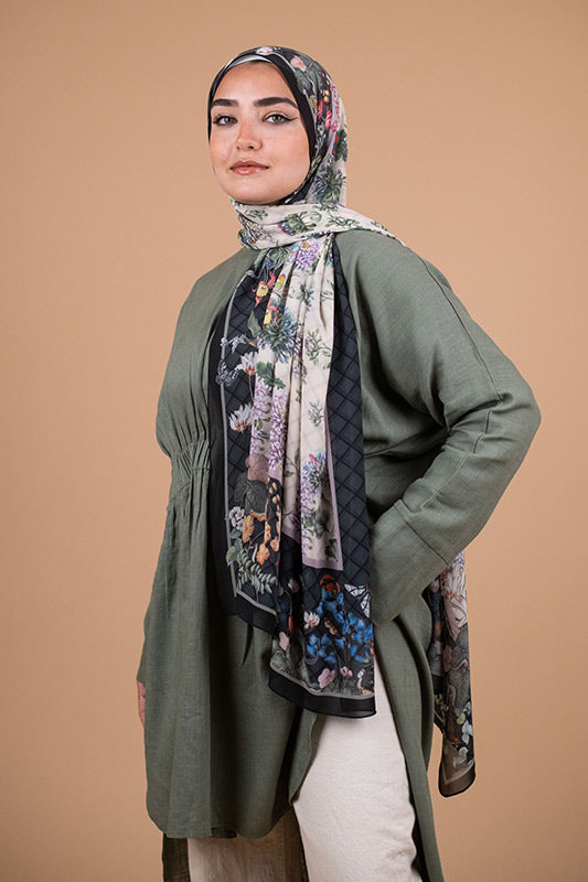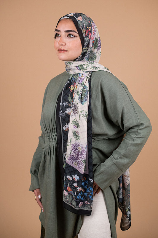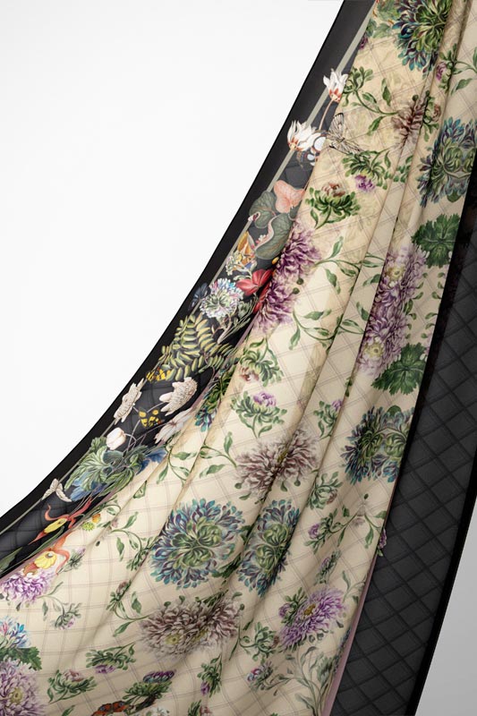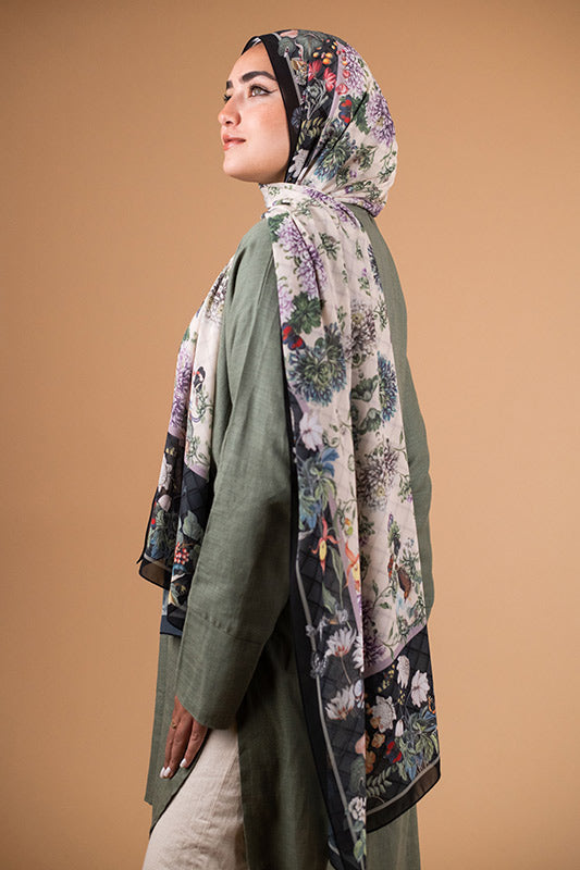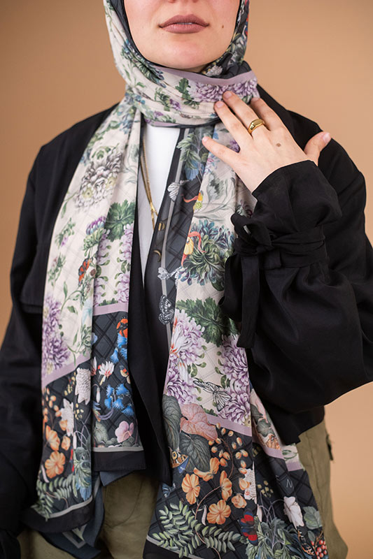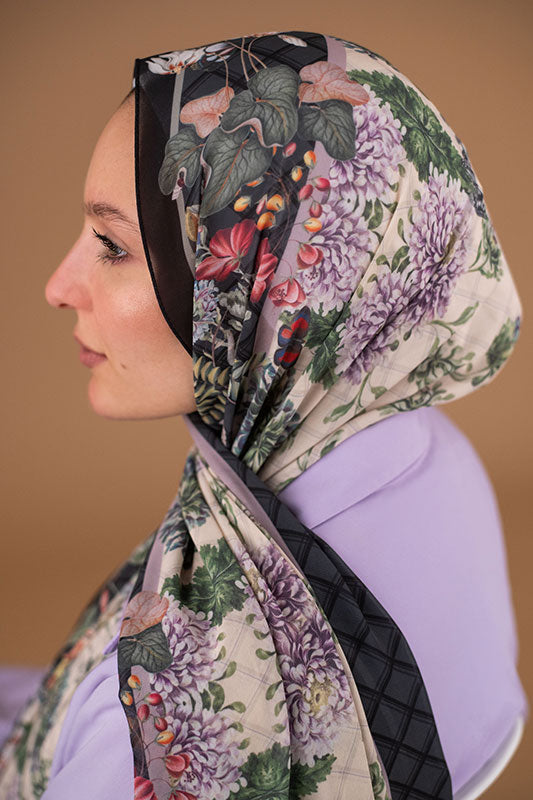 Is this heaven on earth? A masterpiece scarf featuring the essential colors you’ll need: Blue, Black, Green, Lilac, and Yellow.