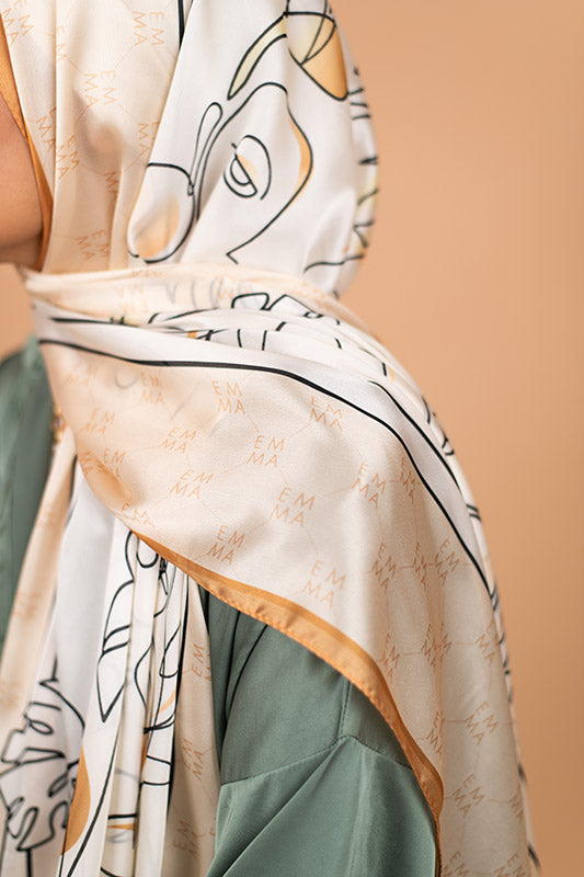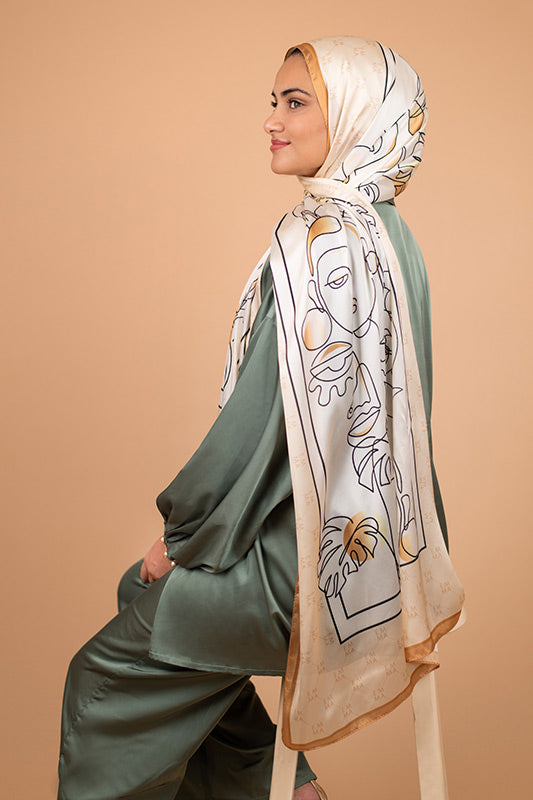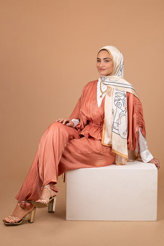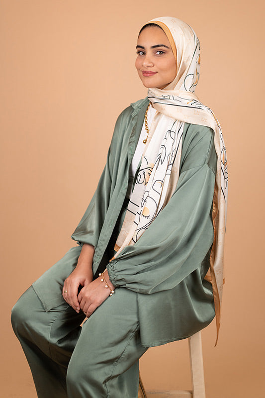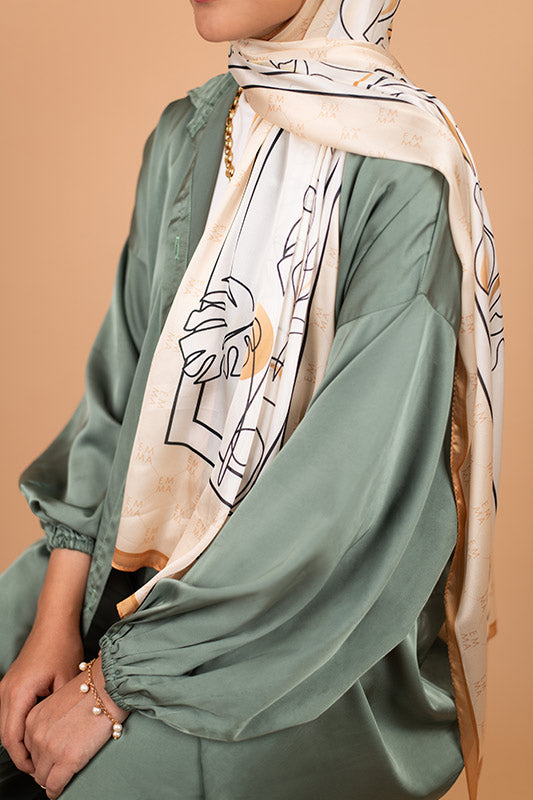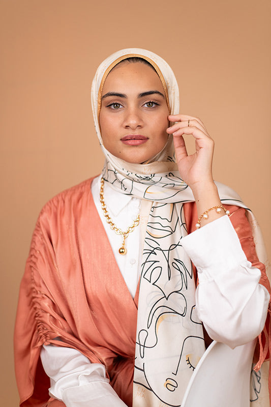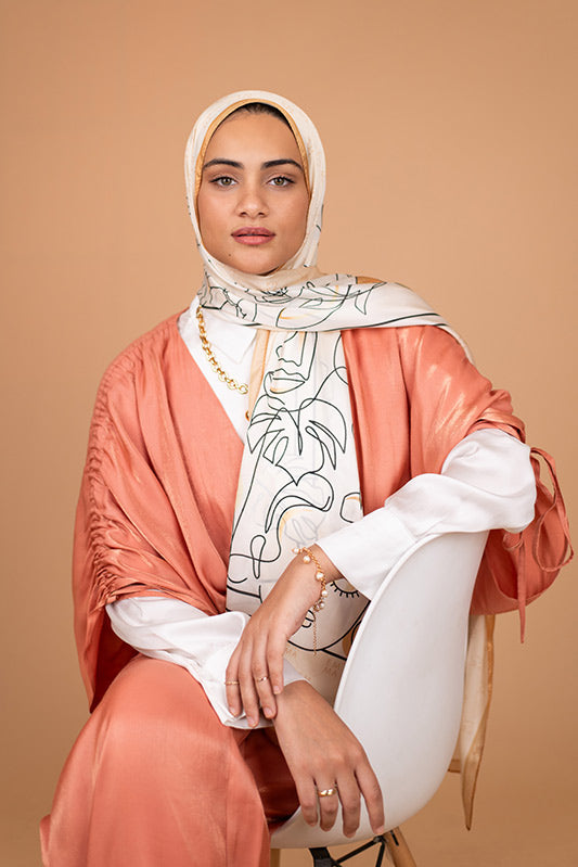 A satin hijab kissed with elegant vibes — sleek reflective shine for elevated refinement.