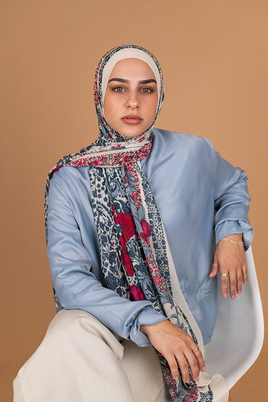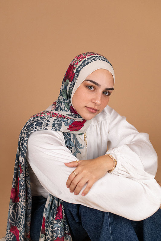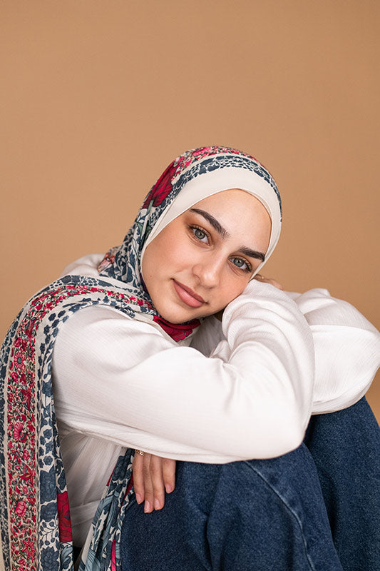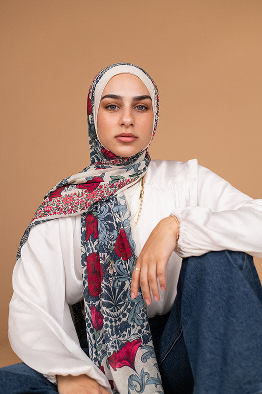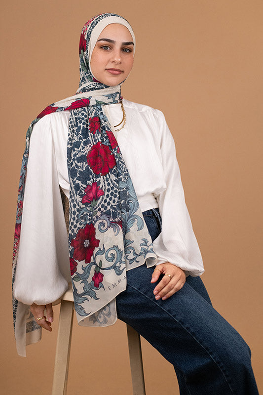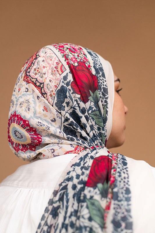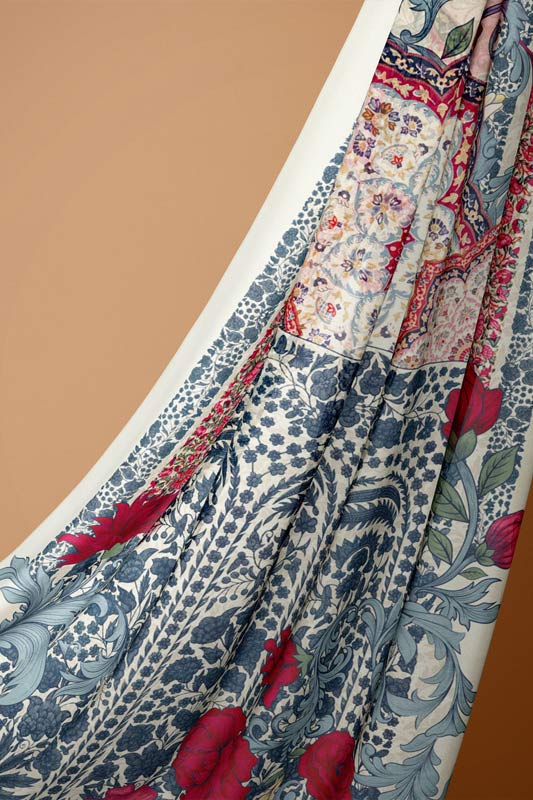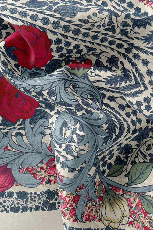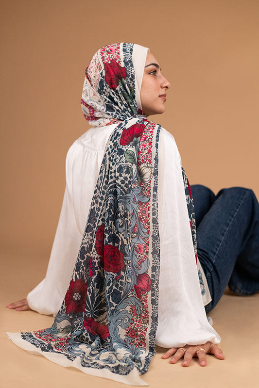 Romantic rose‑inspired chiffon — classic blossoms meet airy elegance.