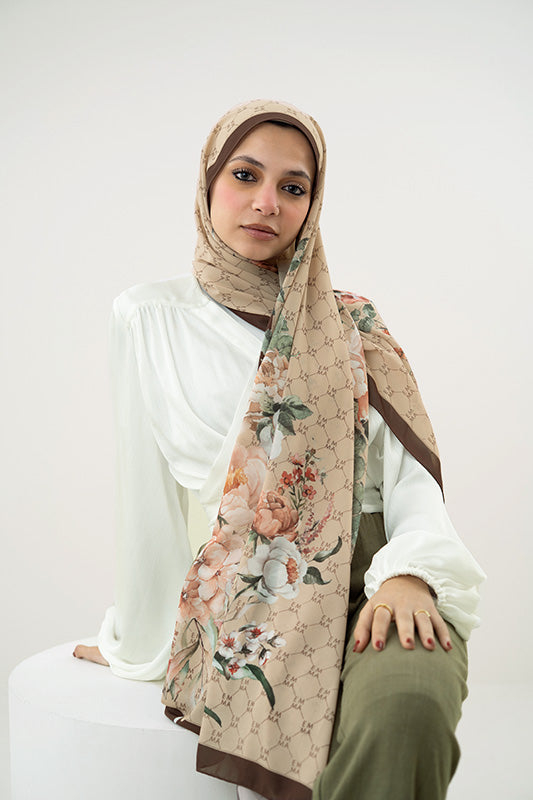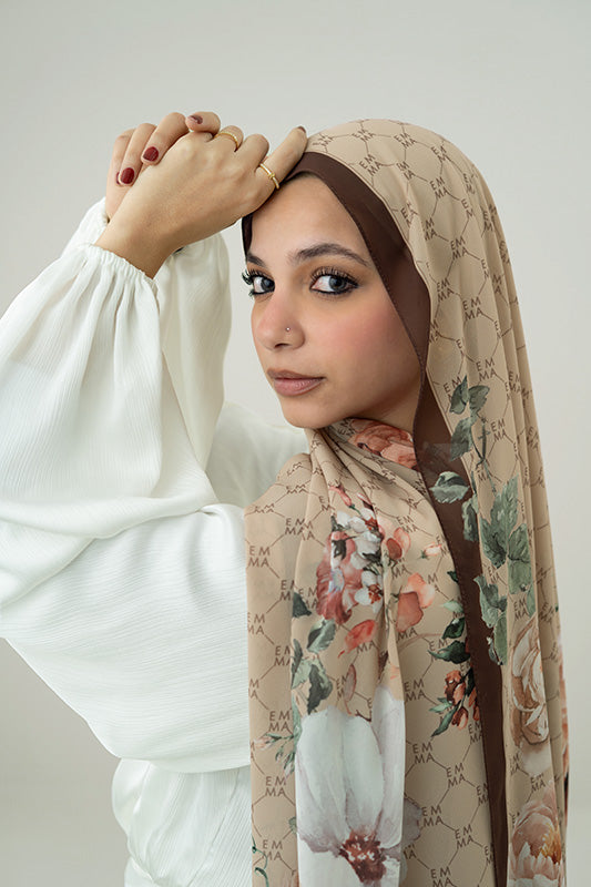 Earthy floral whispers on chiffon — rich tones meet airy movement for elevated everyday style.