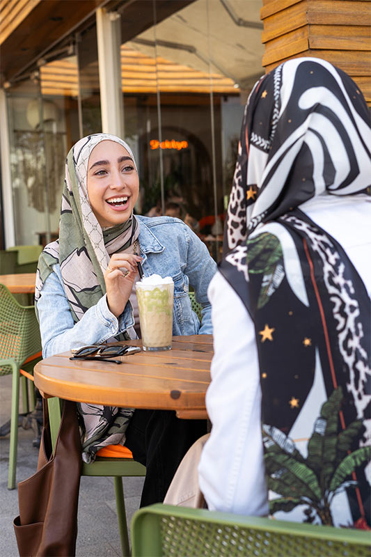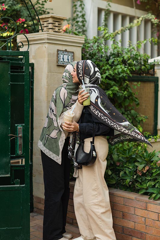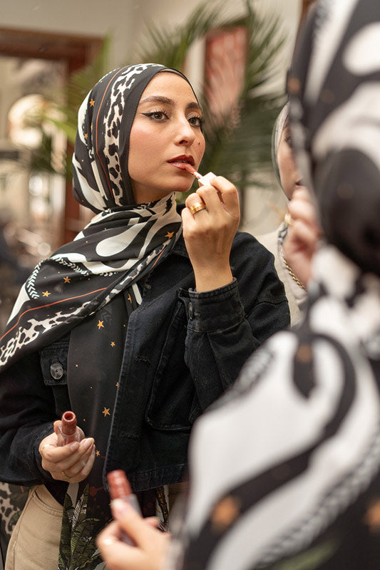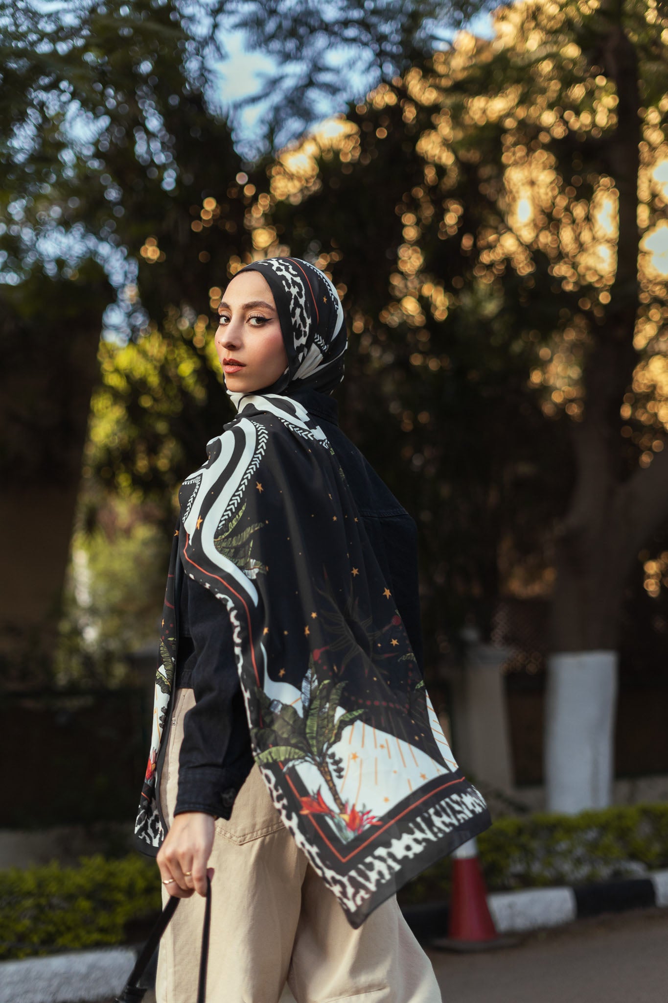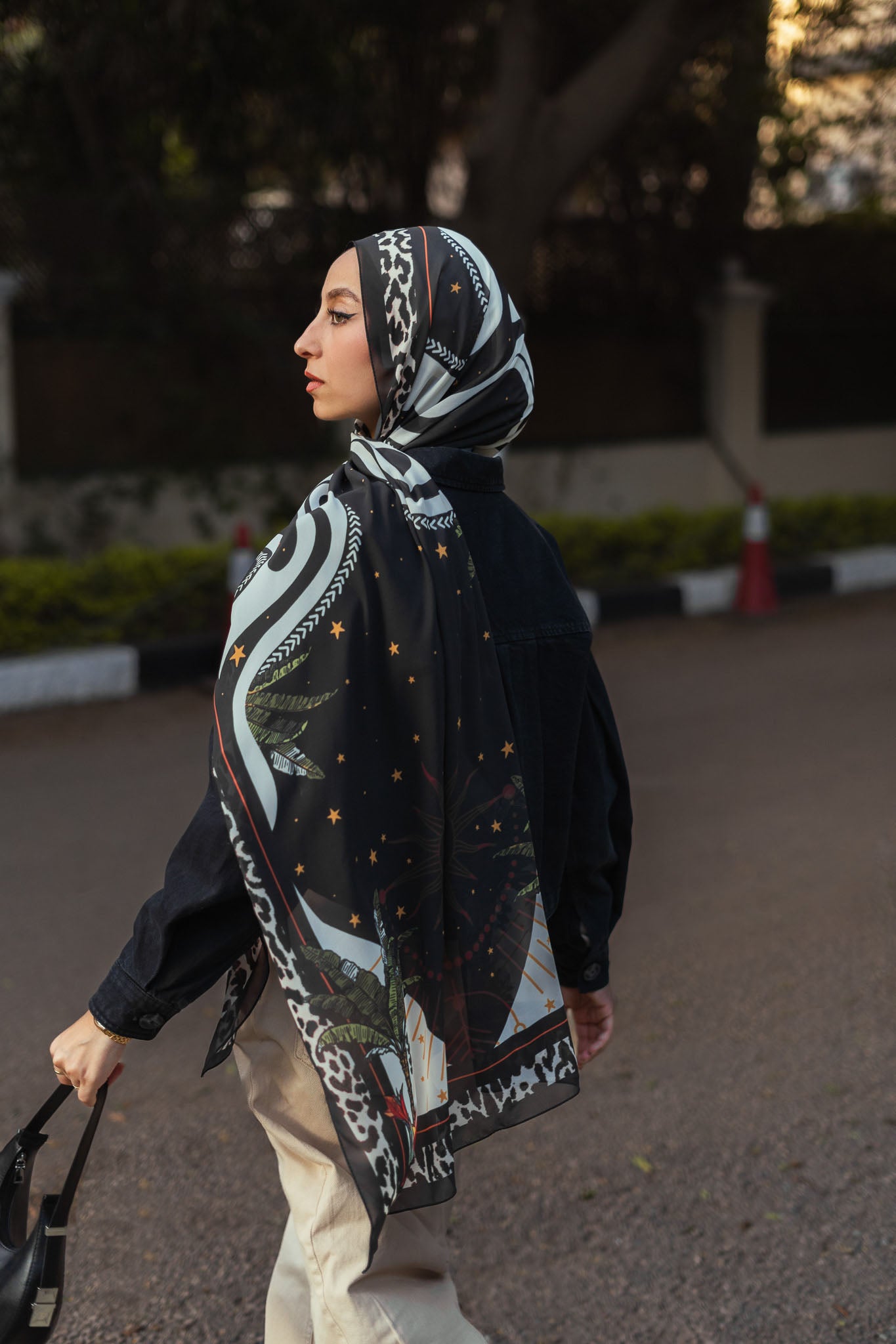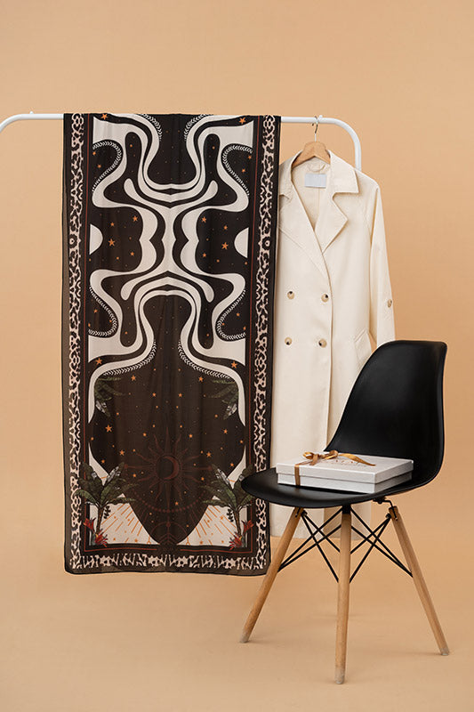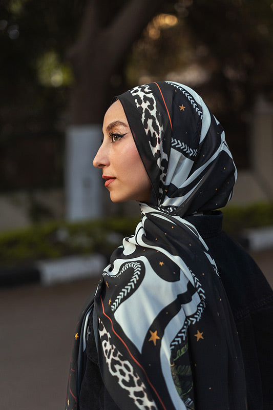 Printed chiffon with bold star motifs — lively expressive and artful in every layer.