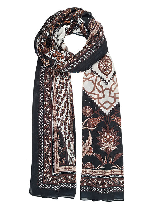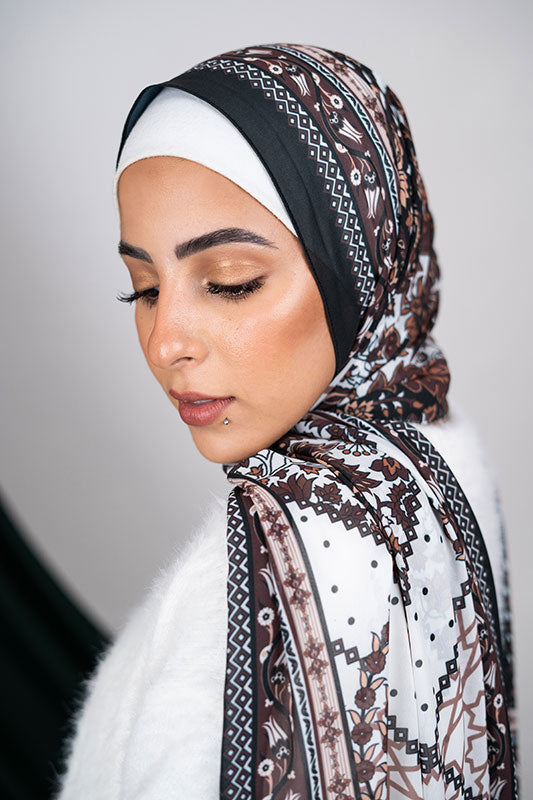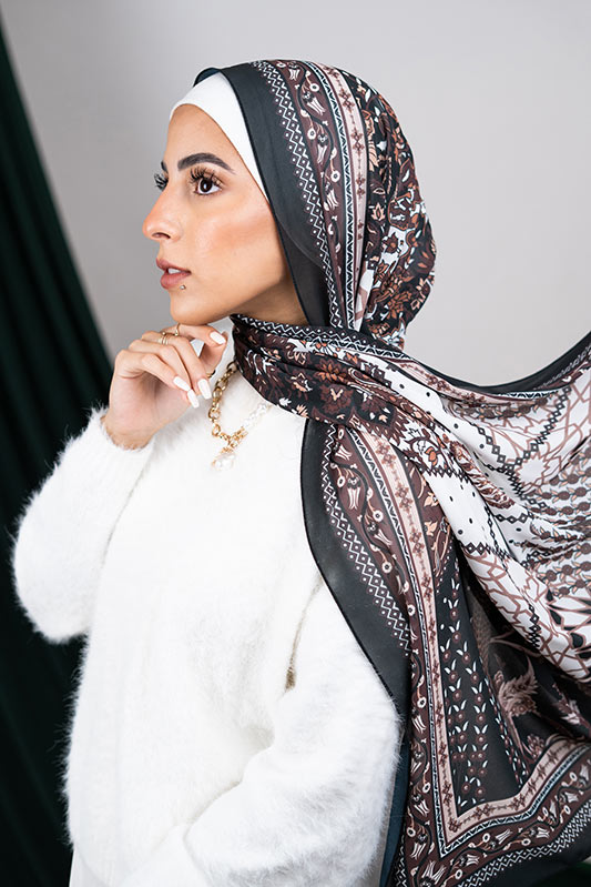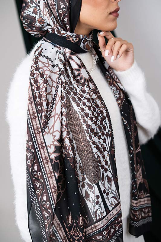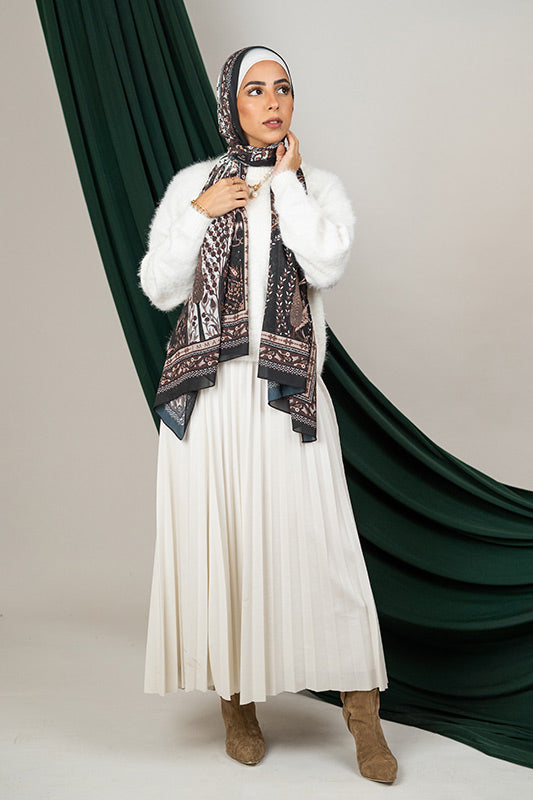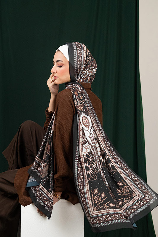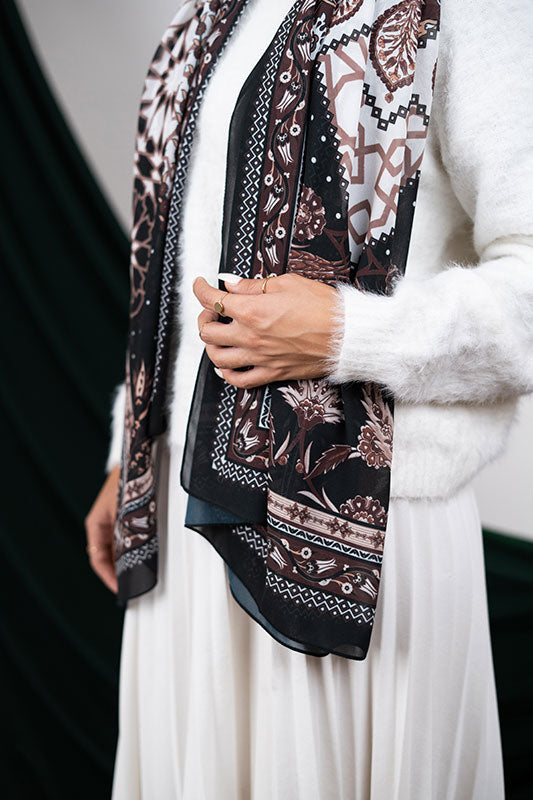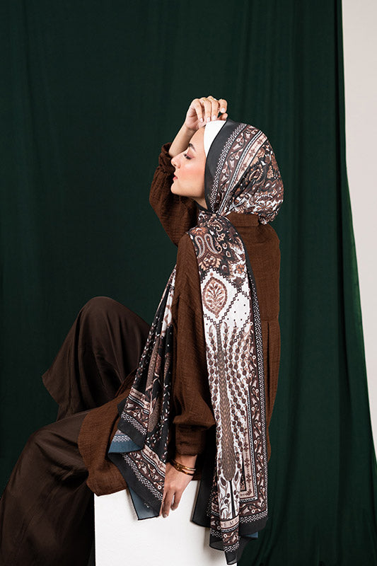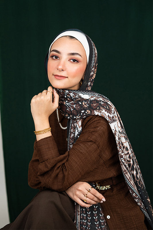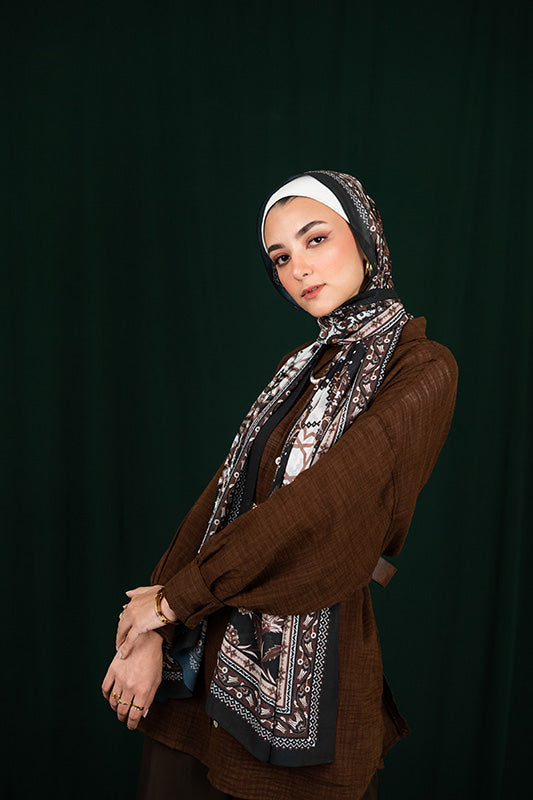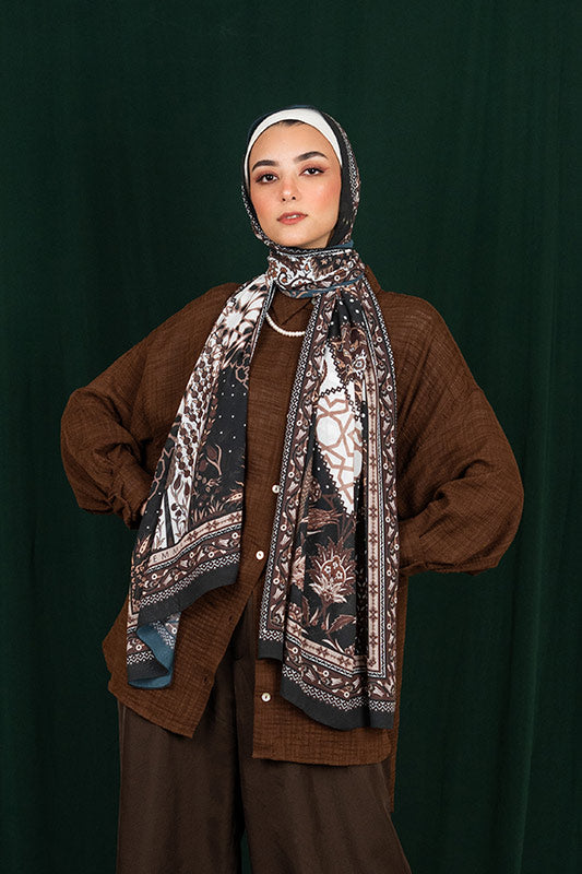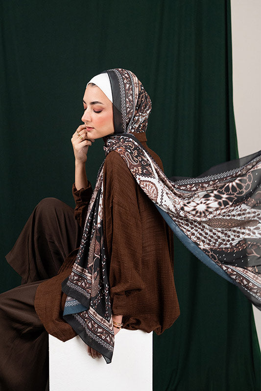 A chiffon print echoing forest whispers — deep tones and nature‑inspired rhythm for quiet confidence.
