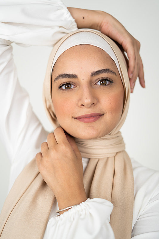 A supple nude‑beige modal with a subtle sheen — versatile soothing and wonderfully fluid in every wrap.