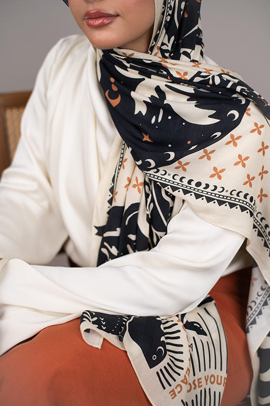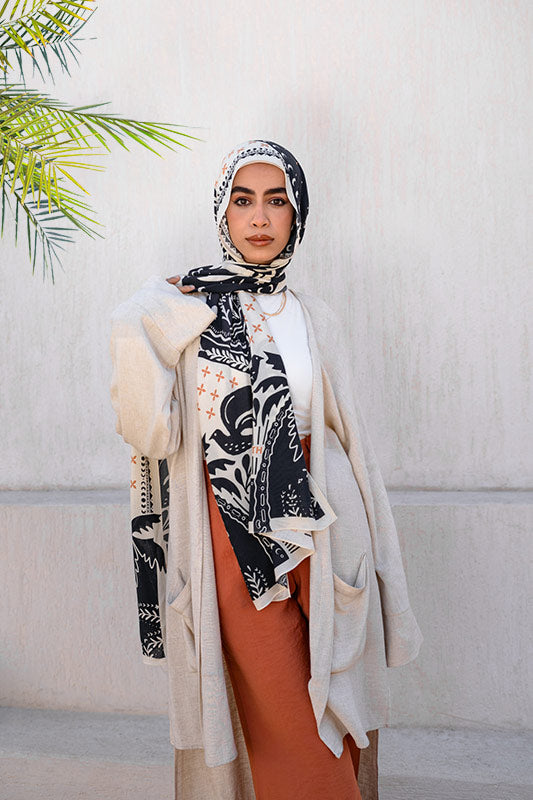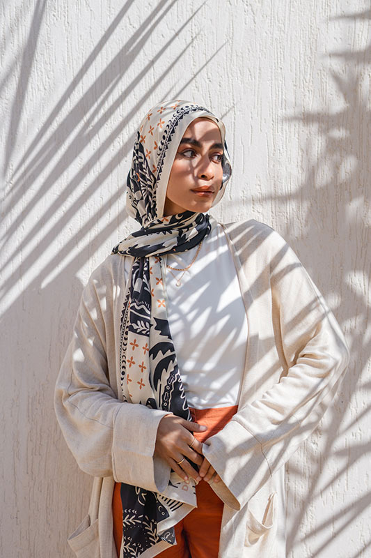 Qamariya is inspired from the moon’s magnetic allure and the night’s mysterious nature. Merging together all the essential colors of black, crème and brown in a modern design for your everyday look.
